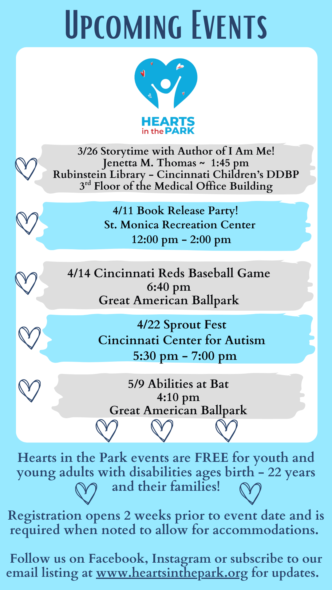 Contact us at: 513-702-0625 or heartsinthepark452@gmail.com with any questions!